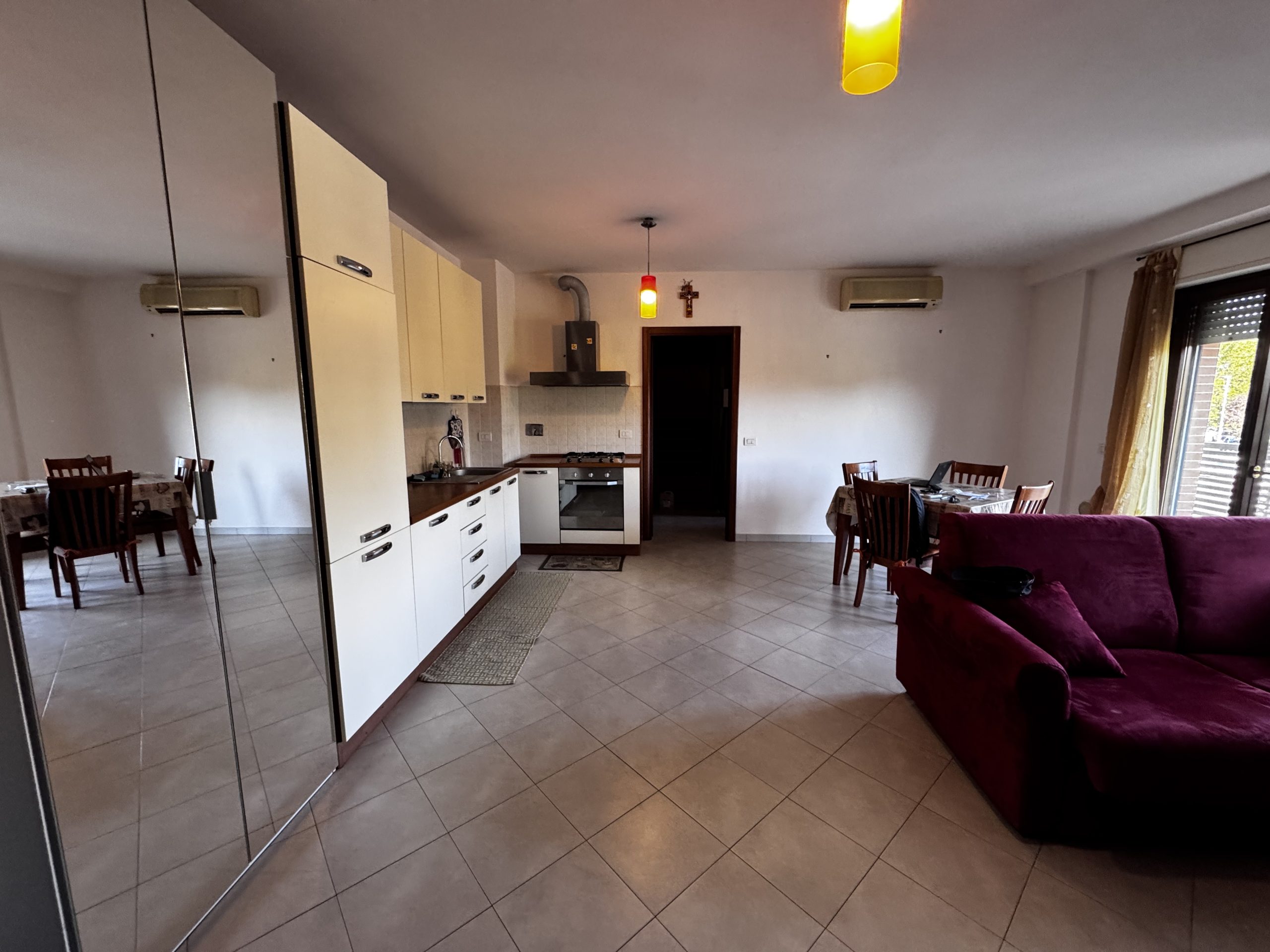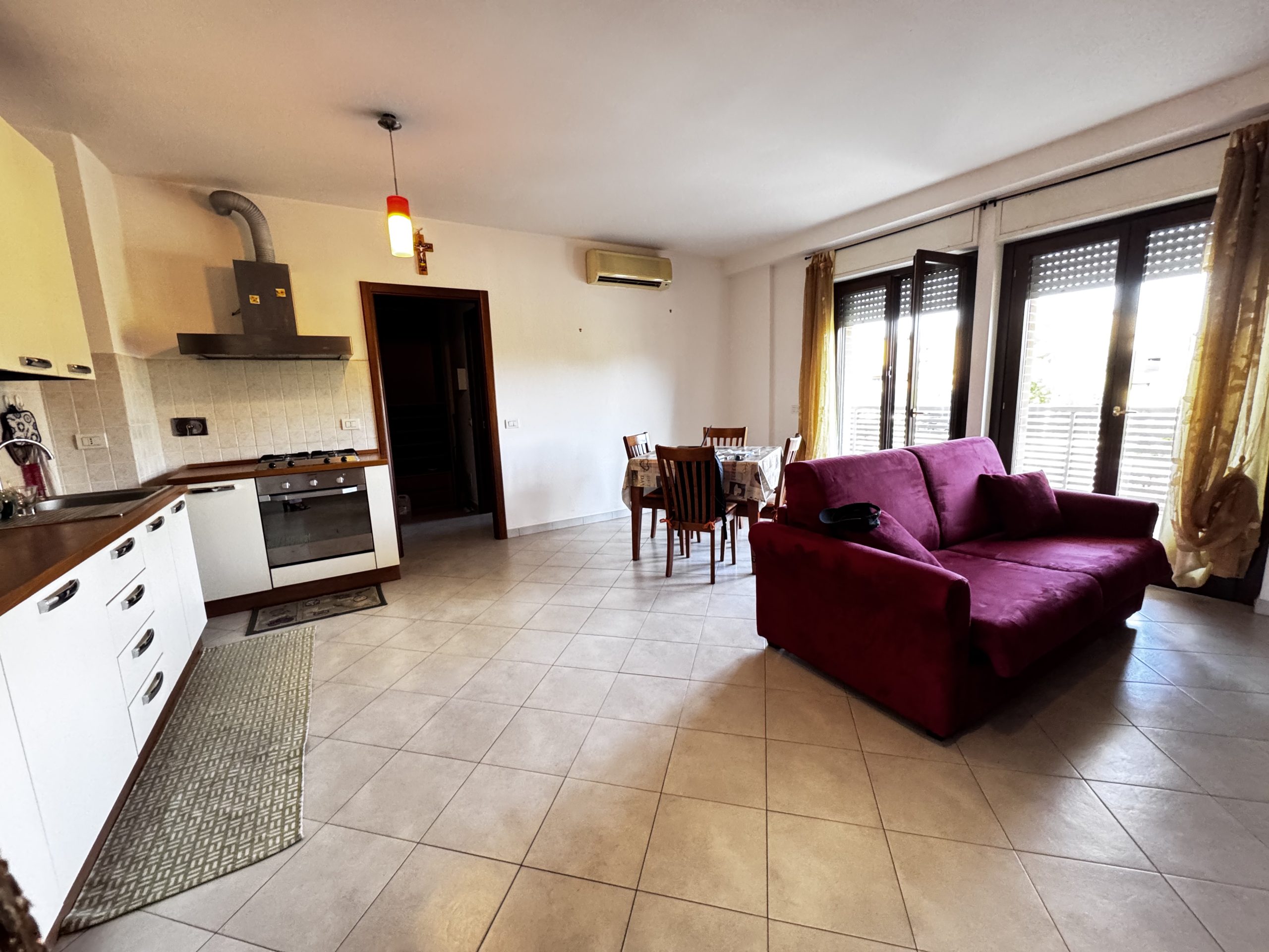 L’appartamento è composto da un ambiente open space con zona giorno/notte, angolo cottura, bagno con finestra e box doccia, disimpegno con cabina cabina armadio e ampio terrazzo esclusivo di circa 40 mq., ideale per pranzi all’aperto o momenti di relax. A completare la proprietà un posto auto scoperto all’interno dell’area condominiale recintata e una soffitta . Buone finiture, infissi in legno vetro camera, condizionatori, porta d’ingresso blindata, video citofono e pannelli solari.