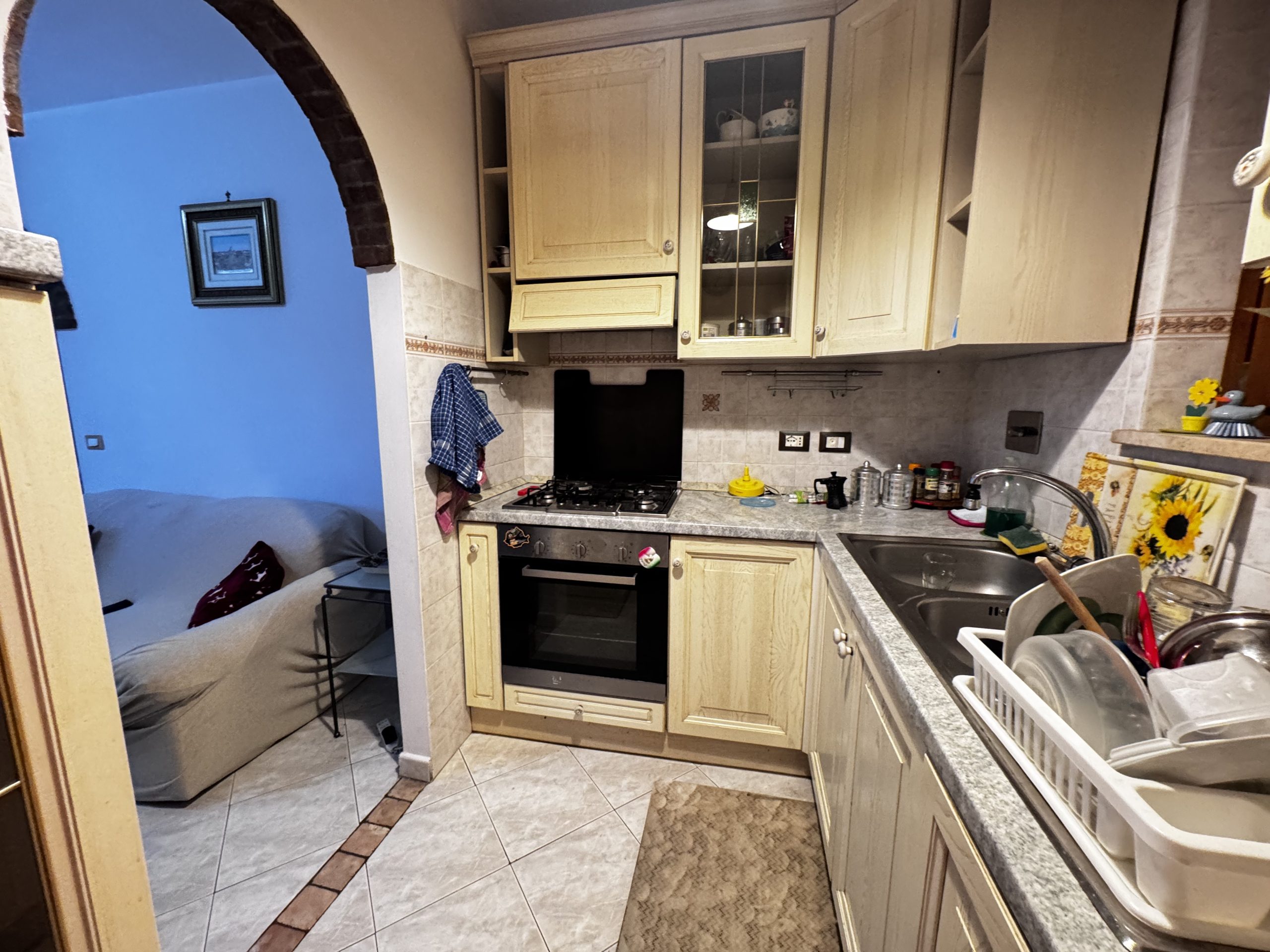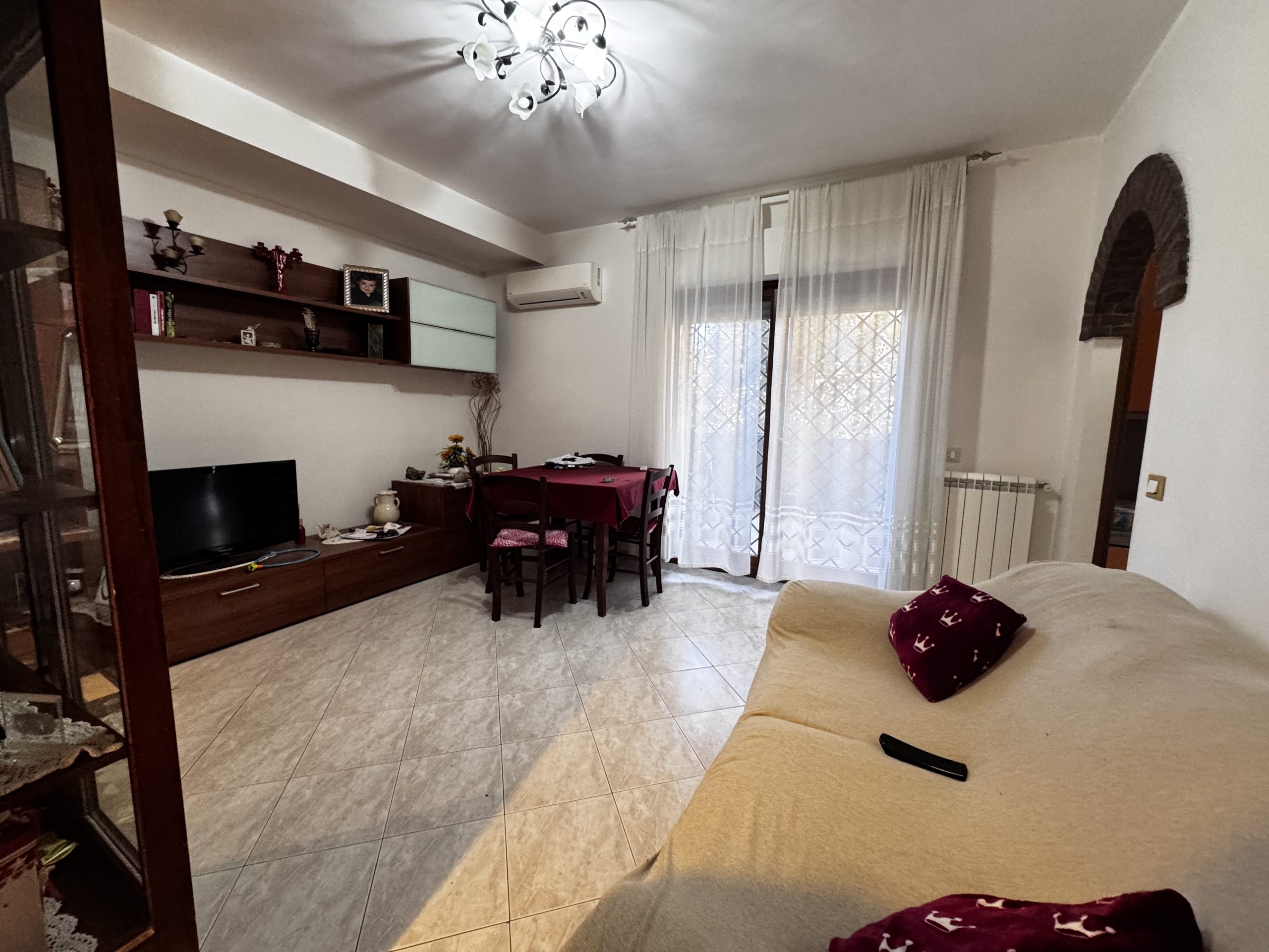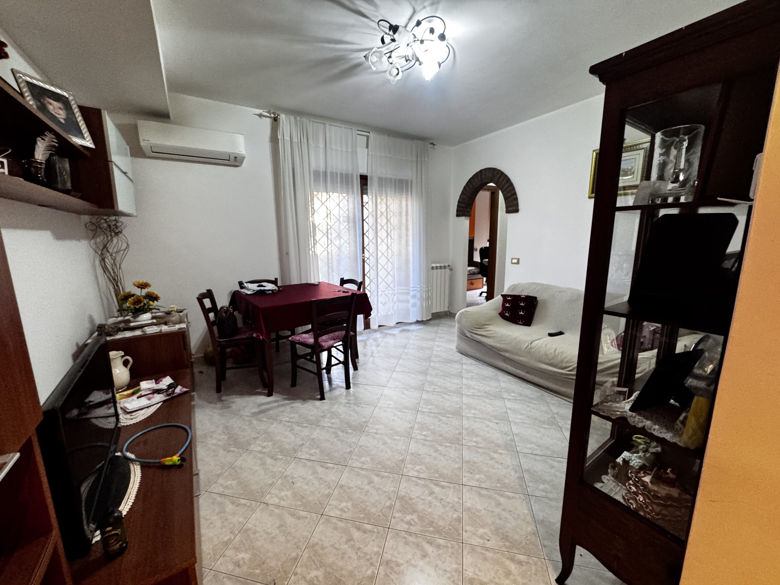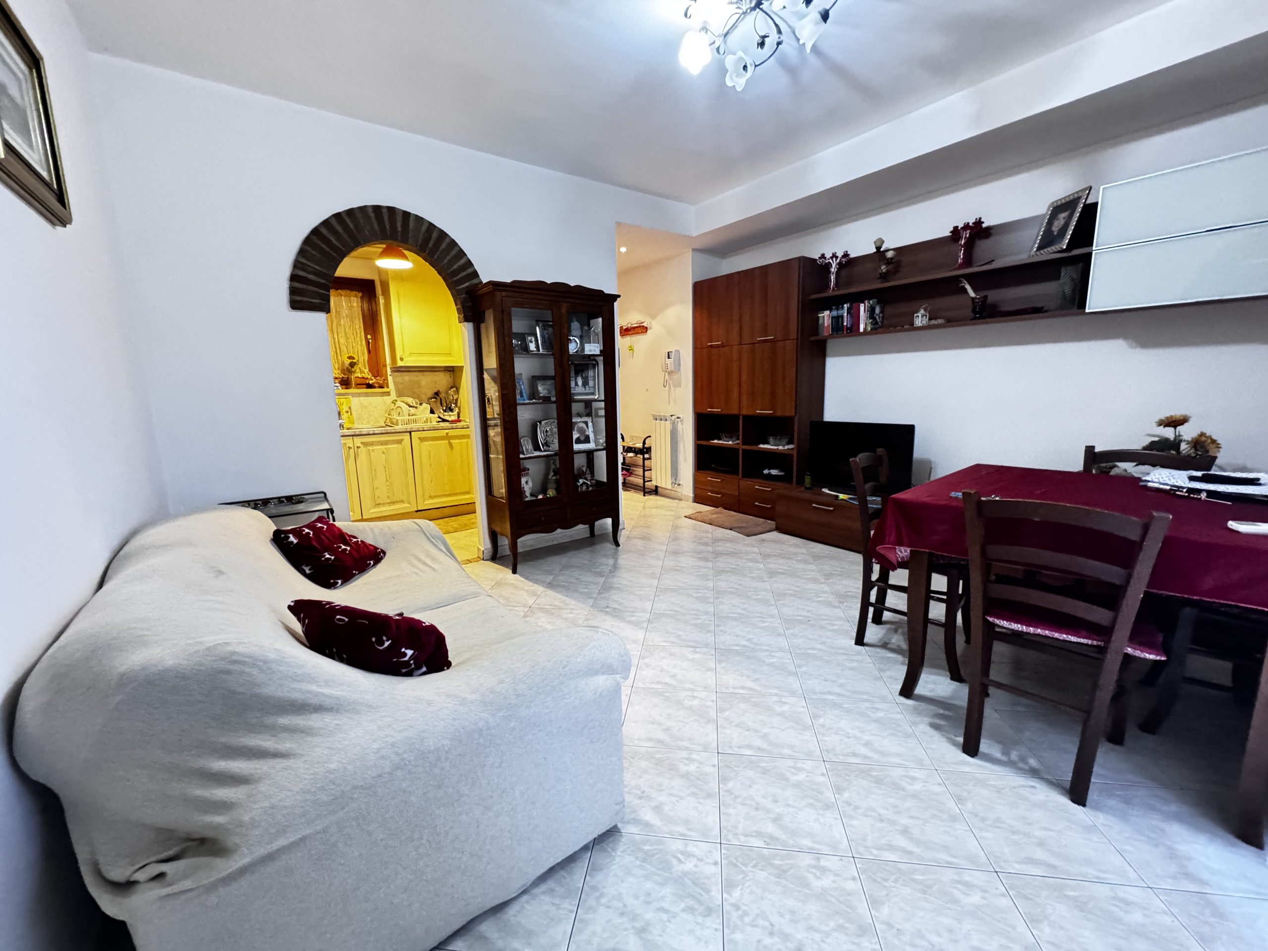 Si propone la vendita di un appartamento collocato al piano primo, al suo interno composto da un comodo soggiorno, che gode di una gradevole luminosità visto il suo accesso diretto sul terrazzo, da un cucinotto , un disimpegno -caratterizzato da un arco curato con mattoncini a vista- separa la camera matrimoniale, la cameretta e il servizio finestrato e con vasca. A completare due balconi.