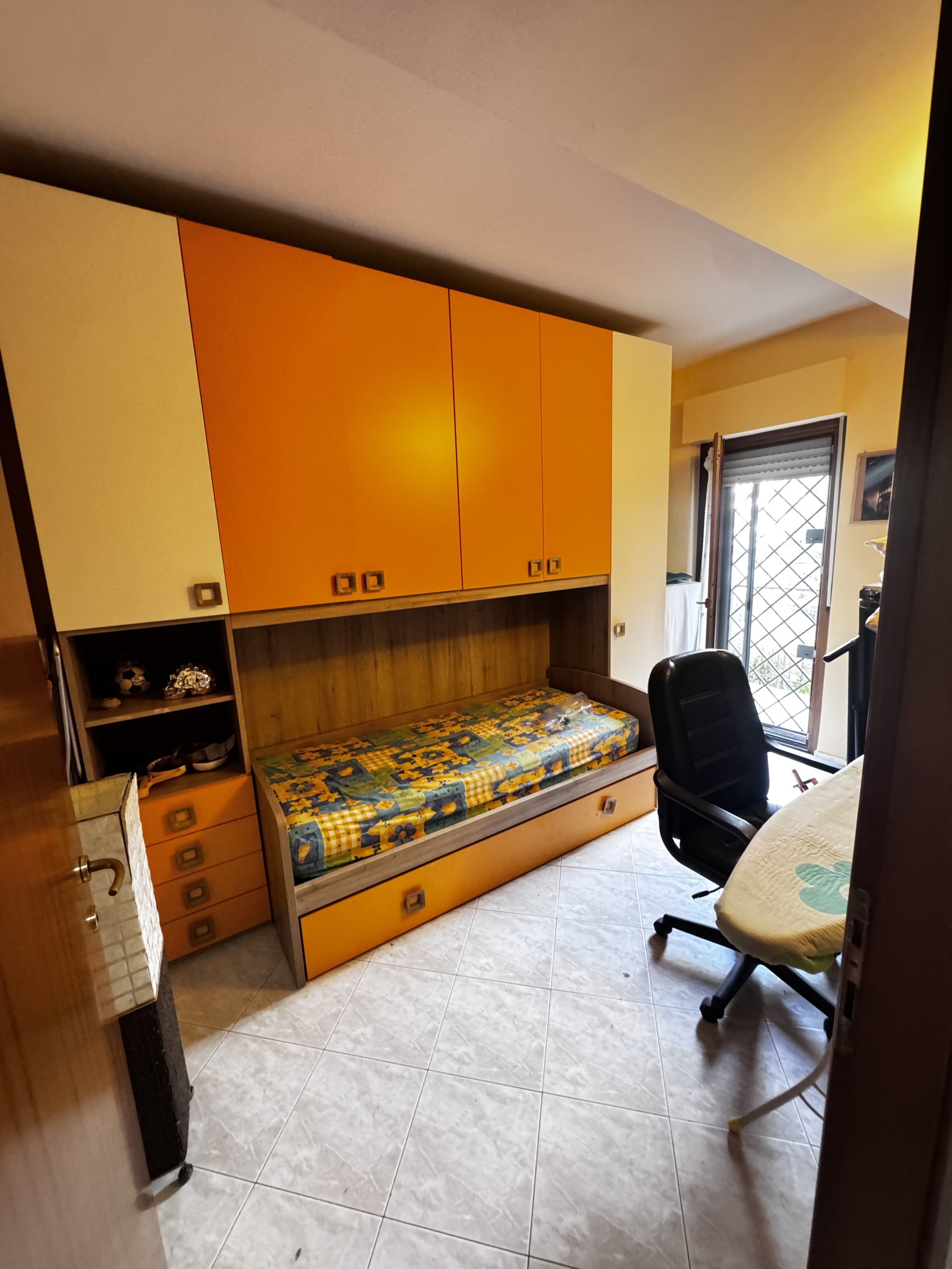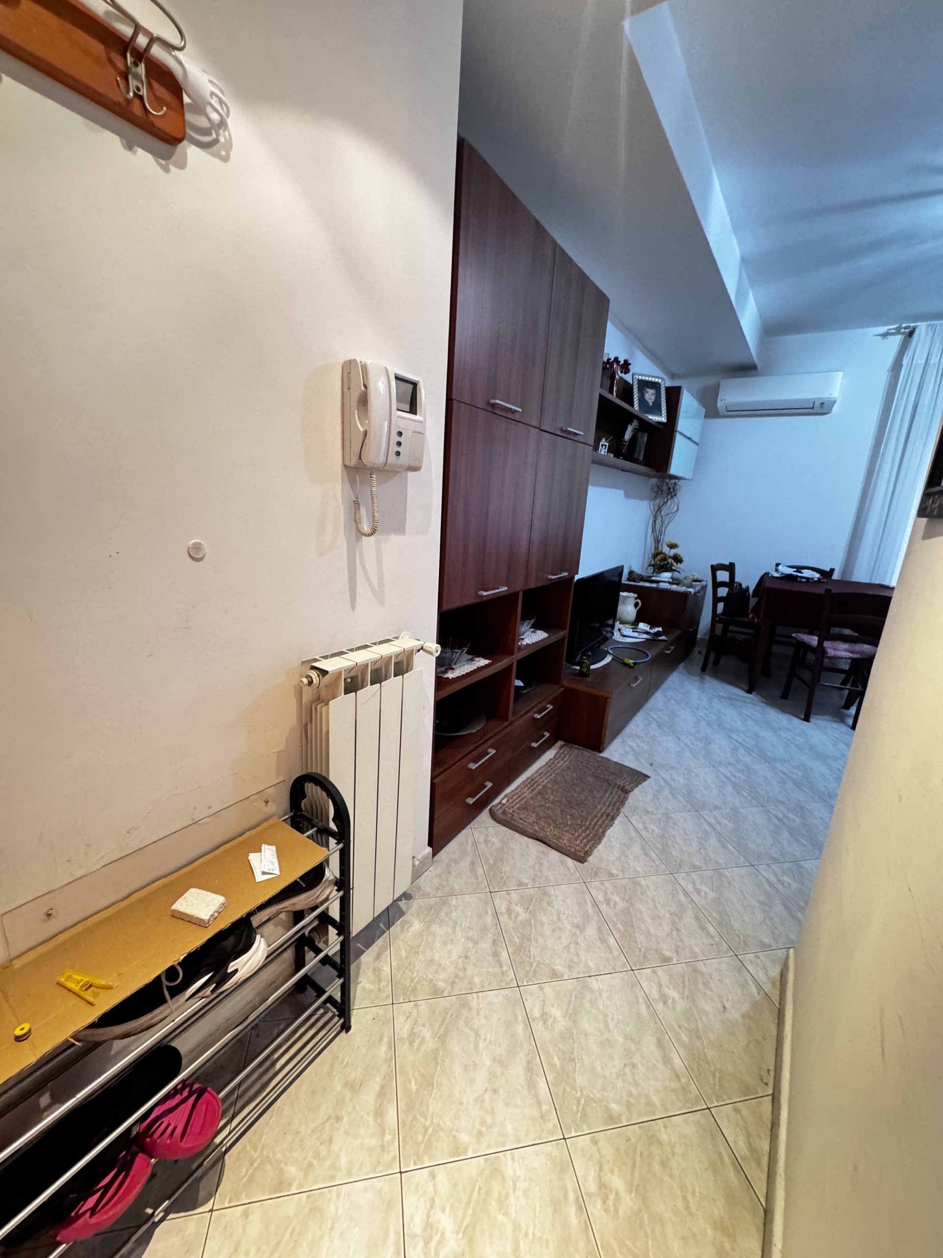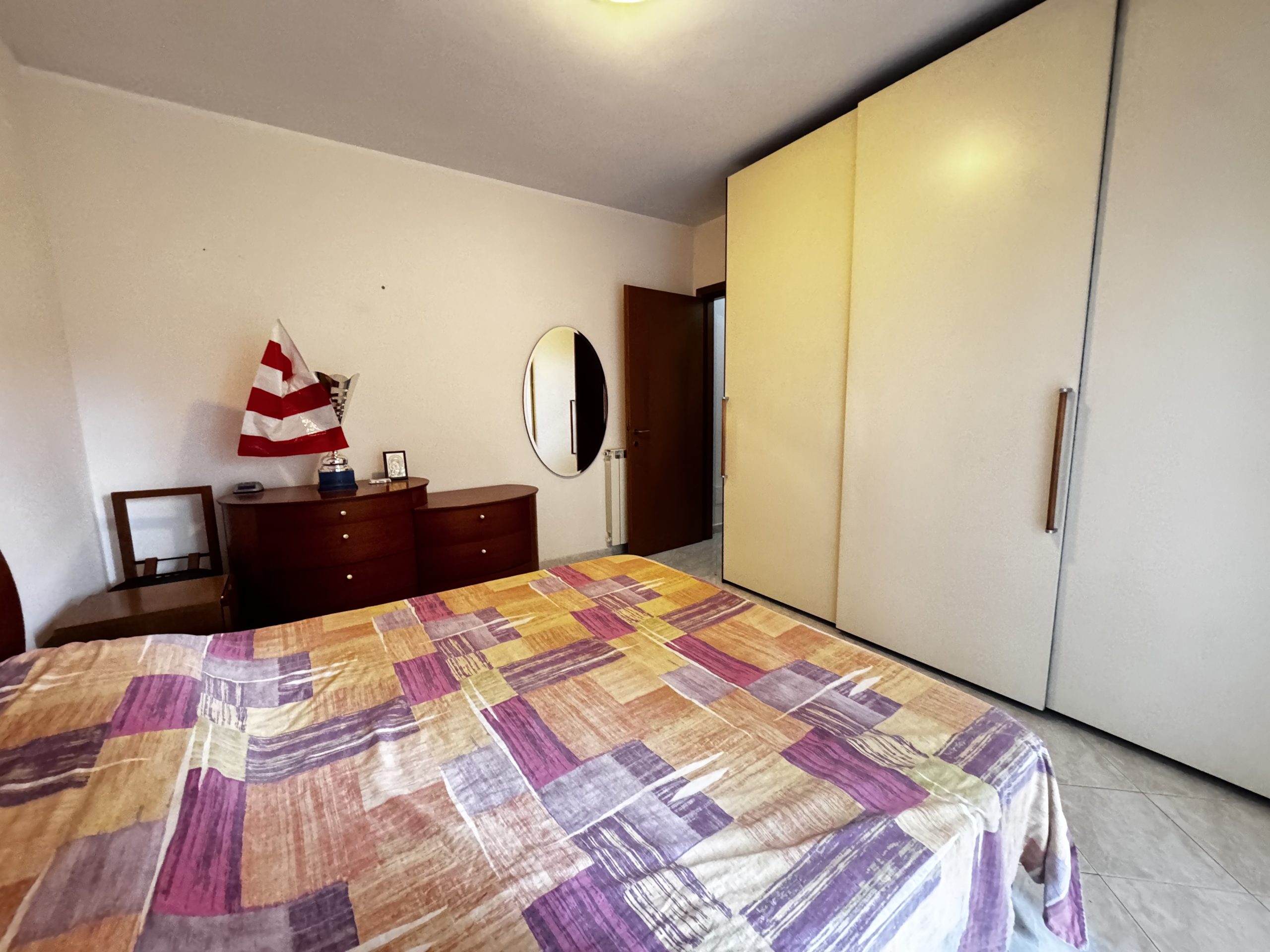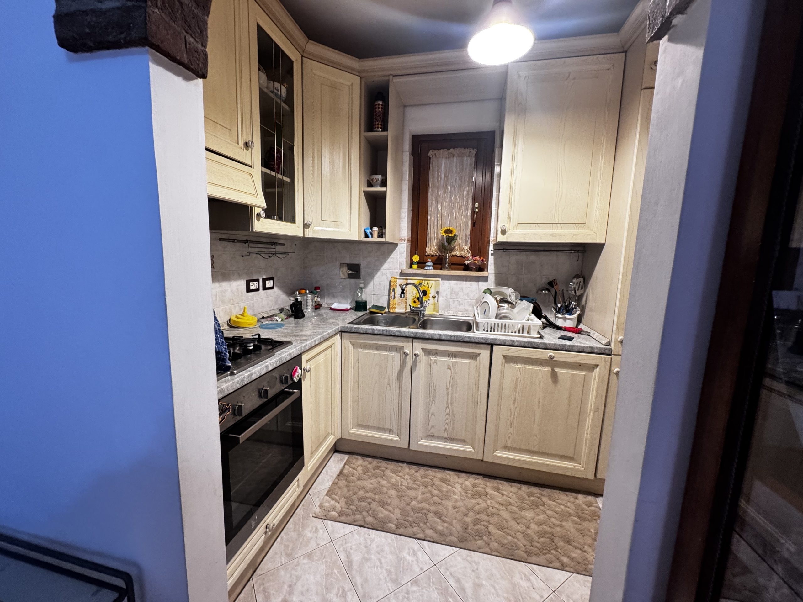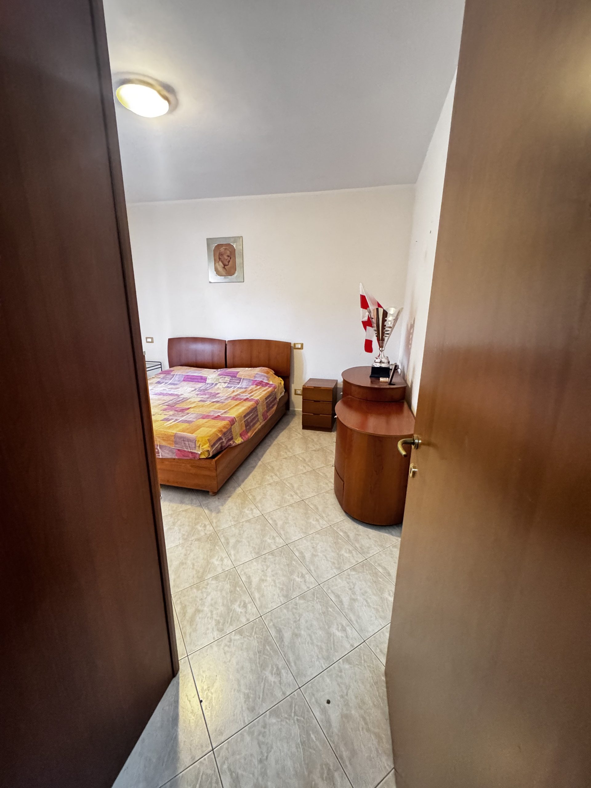 Si propone la vendita di un appartamento collocato al piano primo, al suo interno composto da un comodo soggiorno, che gode di una gradevole luminosità visto il suo accesso diretto sul terrazzo, da un cucinotto , un disimpegno -caratterizzato da un arco curato con mattoncini a vista- separa la camera matrimoniale, la cameretta e il servizio finestrato e con vasca. A completare due balconi.