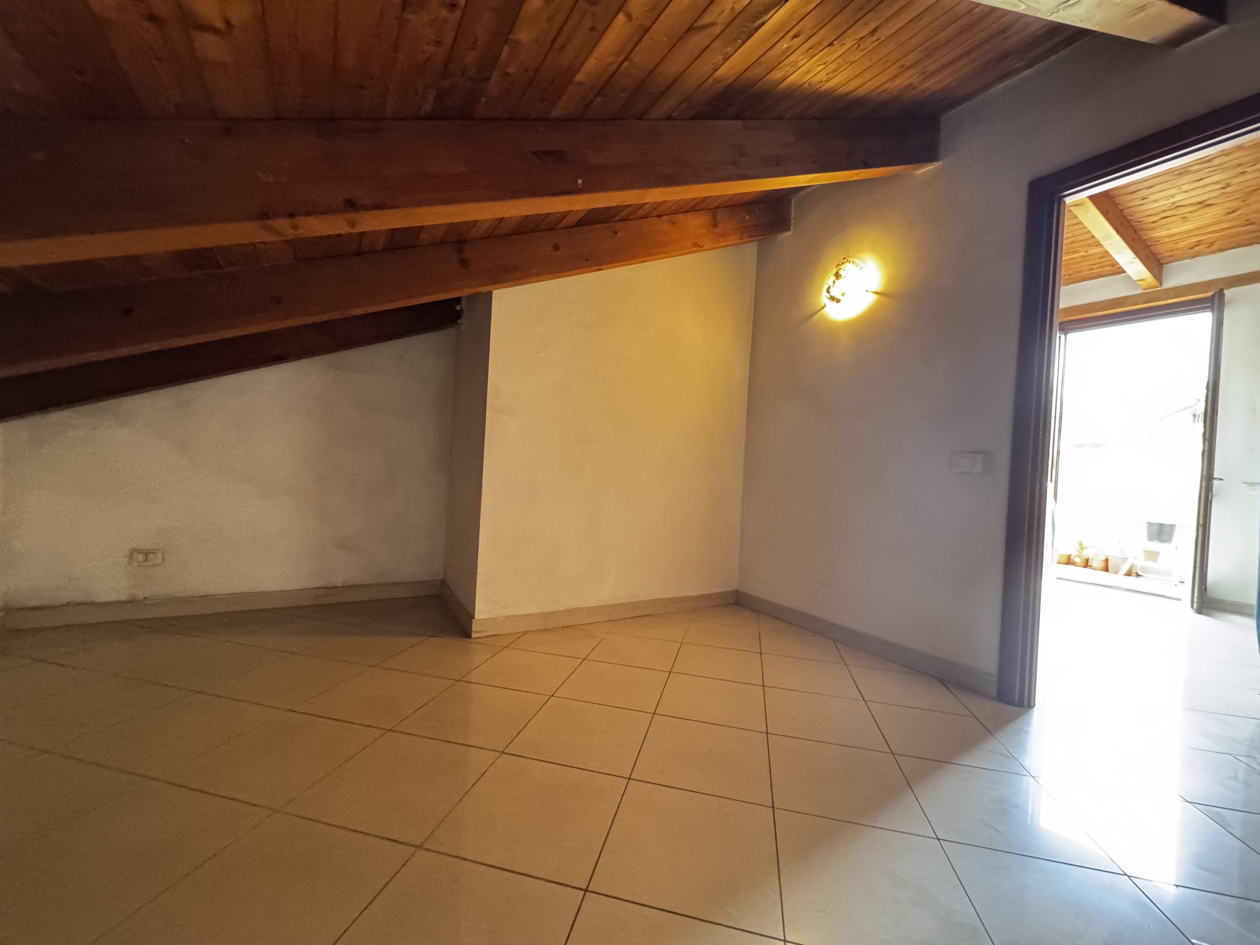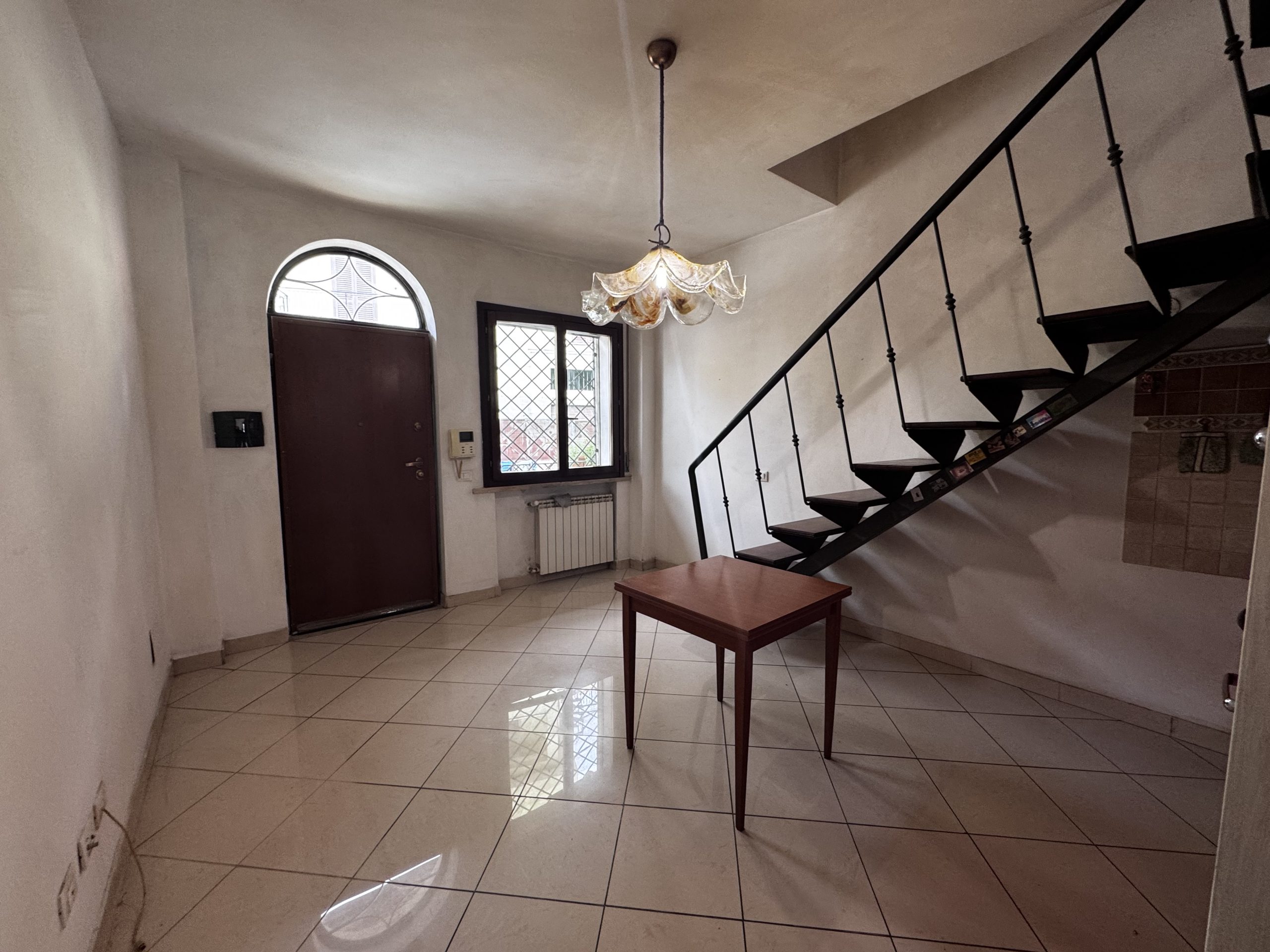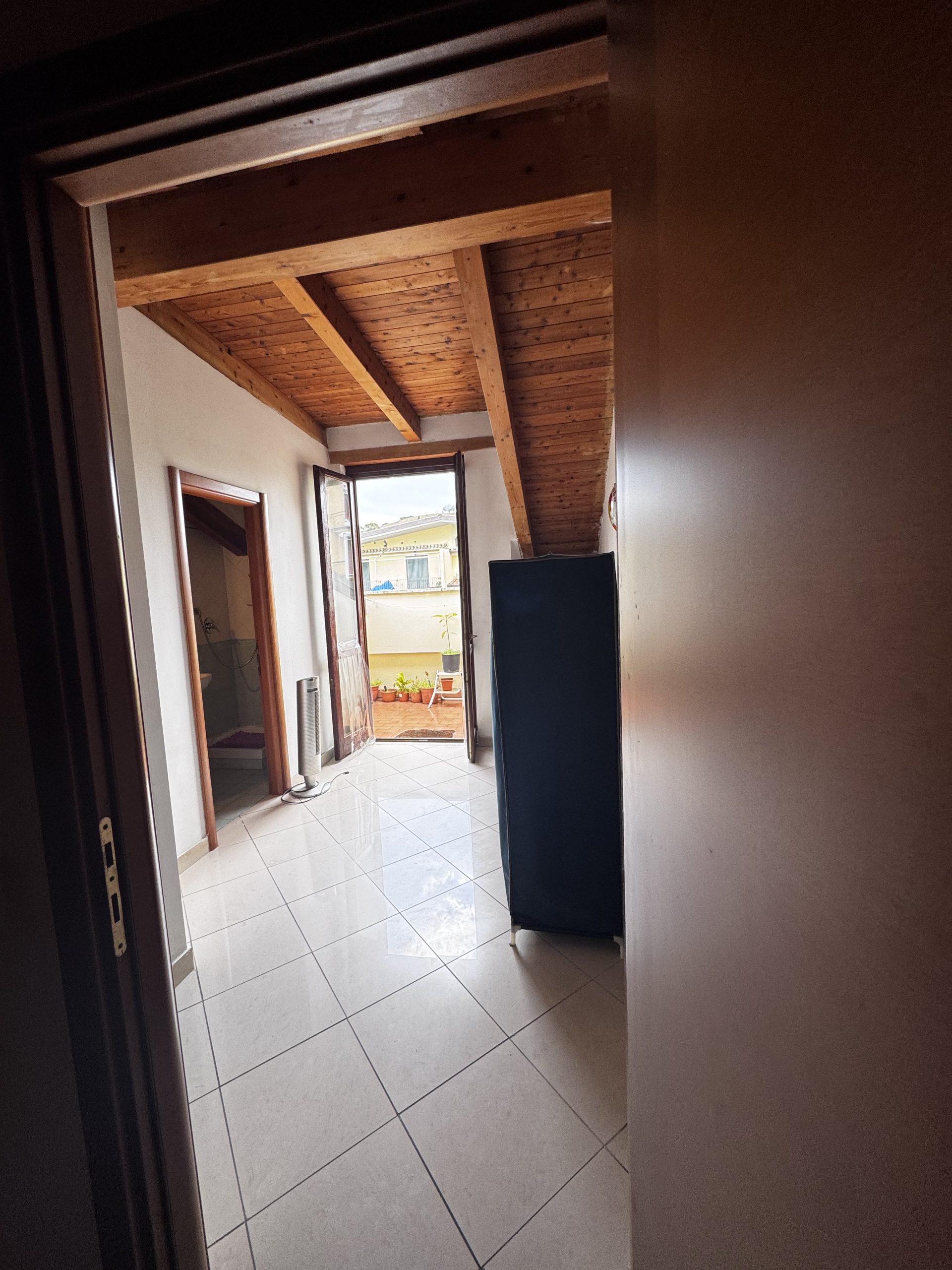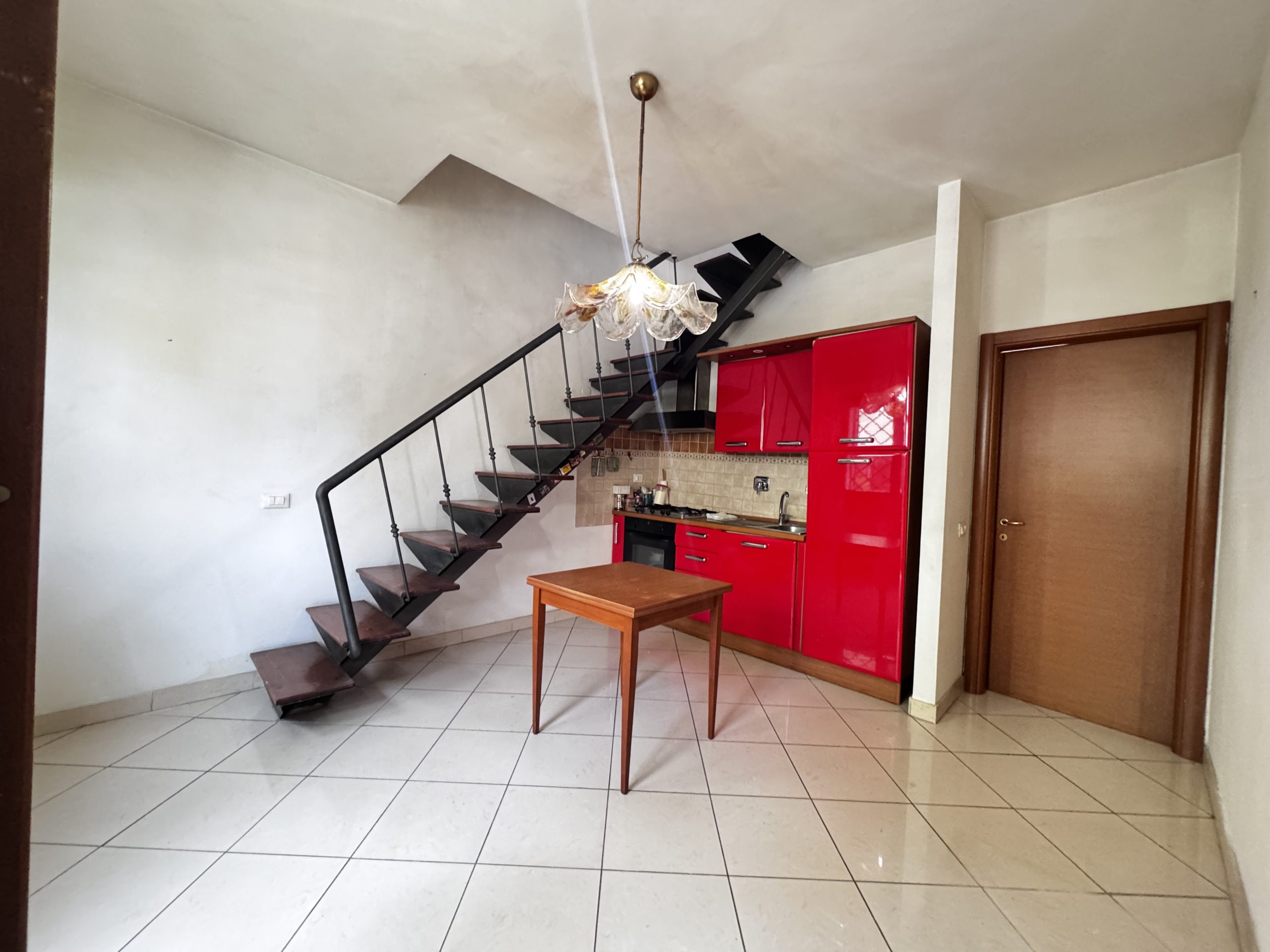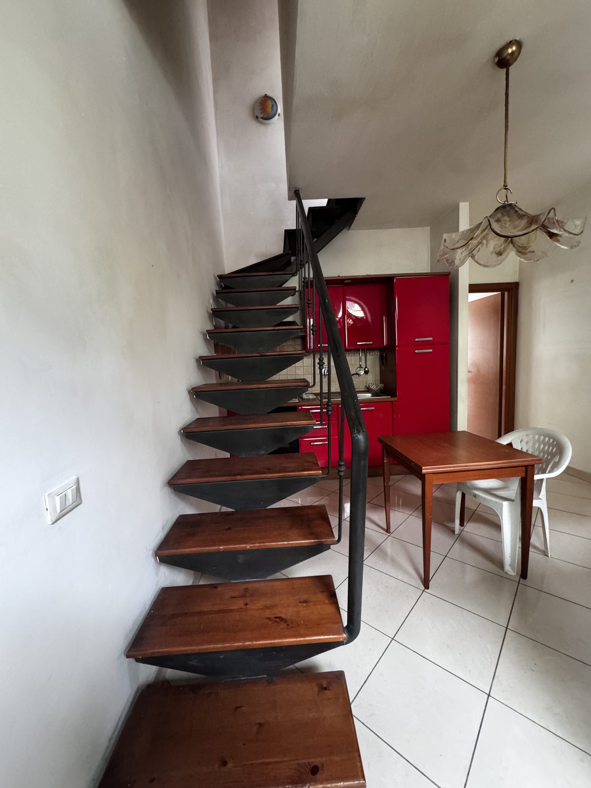 Monterotondo Scalo- a pochi passi dalla stazione ferroviaria- propone la vendita di un comodo appartamento trilocale inserito in uno stabile costituito da poche unita’ abitative tutte rigorosamente con ingresso semi indipendente. La casa, e’ distribuita su due livelli collegati tra loro da una scala in legno e ferro battuto. Al suo interno troviamo in entrata il soggiorno con angolo cottura, la camera e il servizio dotato di box doccia. Al secondo livello abitativo troviamo una seconda camera, un secondo servizio, e un balcone. Porta d’ingresso blindata, infissi in legno vetro camera rassicurati dalle persiane blindate, video citofono, riscaldamento autonomo. Ideale per una coppia, single o per una famiglia, l’abitazione e’ caratterizzata da delle travi a vista in legno che rendono l’ambiente caloroso. Posto auto scoperto al prezzo di € 11.000,00. Prezzo trattabile.